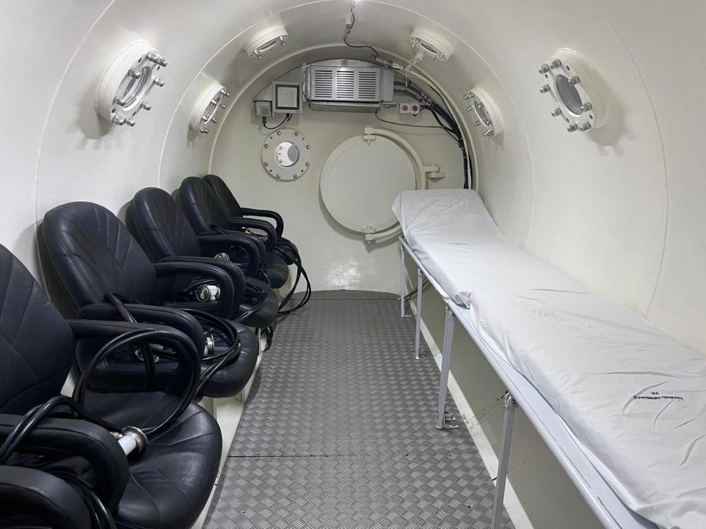 As câmaras hiperbáricas para uso médico possuem paredes rígidas, resistentes à pressão, que delimitam o compartimento interno onde se realizam os tratamentos em sessões com duração de 90 minutos, dependendo do tamanho do paciente, da idade, do tipo de lesão.